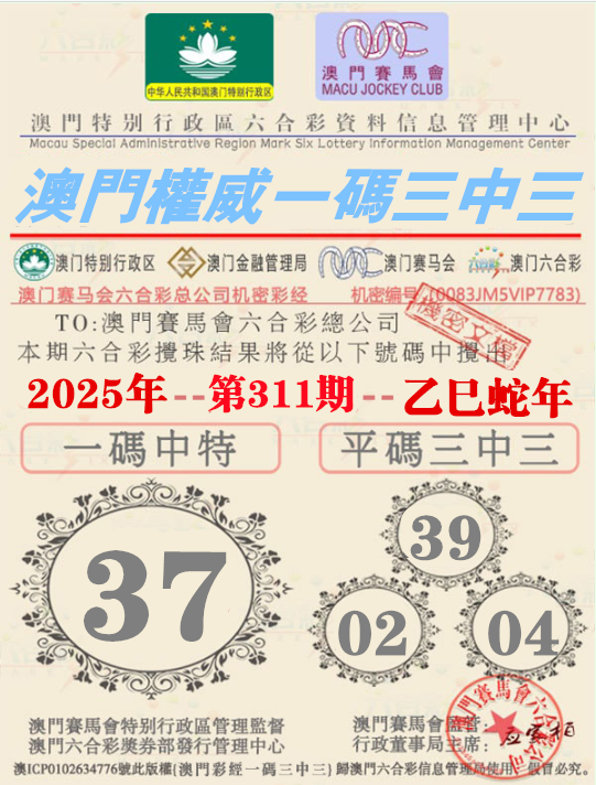 311期:【澳门权威资料】√一码三中三√ 澳门权威精准资料