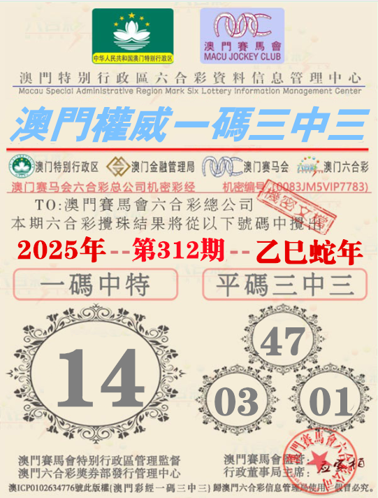 312期:【澳门权威资料】√一码三中三√ 澳门权威精准资料